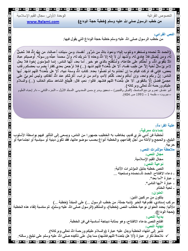 النصوص القرائية من خطب الرسول صلى الله عليه وسلم خطبة حجة الوداع